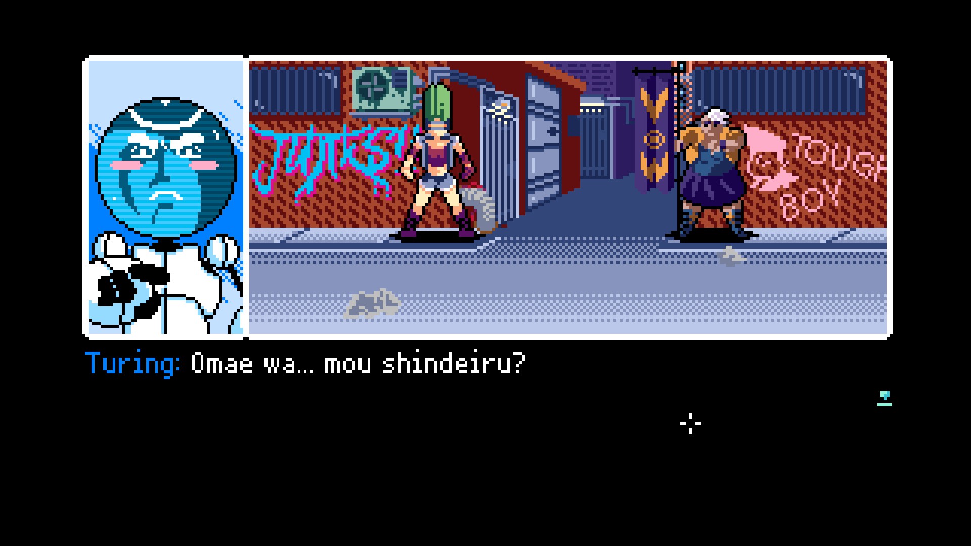 So for all of the charm the game has, do I have any gripes? Well yes, but it’s only one, and it’s a minor one that I also took issue with in Phoenix Wright. As shown in the first image where Turing impersonates Kenshiro (to a T, I might add), some characters will have a more detailed profile when you talk to them. That’s not a problem by itself, in fact, I think that’s a nice touch and lets you see a little bit more of the characters and how they hold themselves. My problem comes in with the fact that some of them have animations that play at the end of their dialogue that prevents you from moving forward in the story until it plays. As I said, it’s minor, but depending on how much you talk to people, it can be a little grating and the time does add up throughout the game. But honestly? That’s the only gripe I can think of. The game is pretty lenient in letting you try things even if it’s not the solution, and the manual save system lets you reload should you want to go back to try another dialogue branch or an item on a person or object.