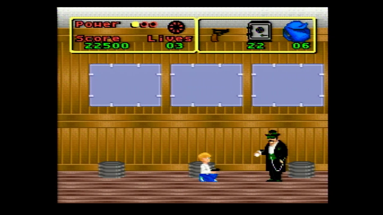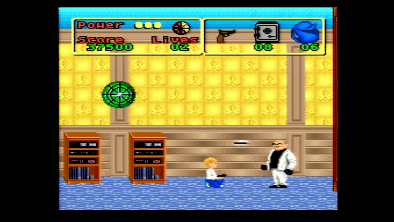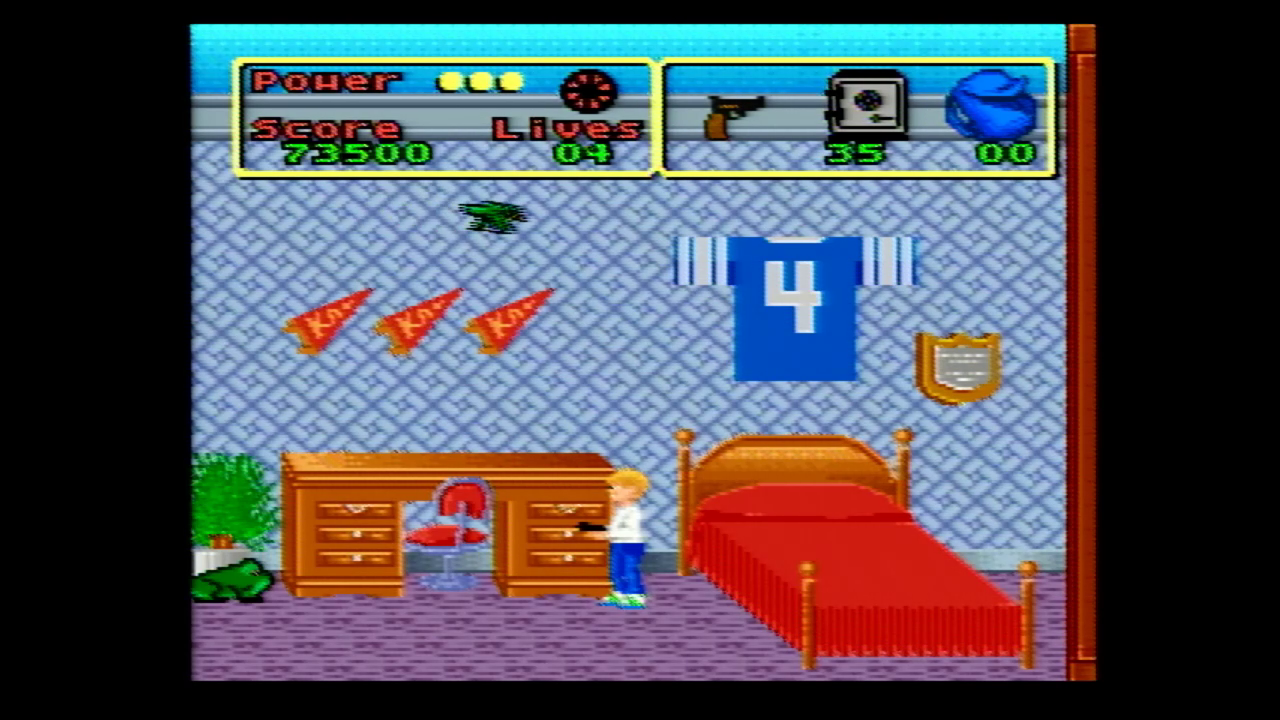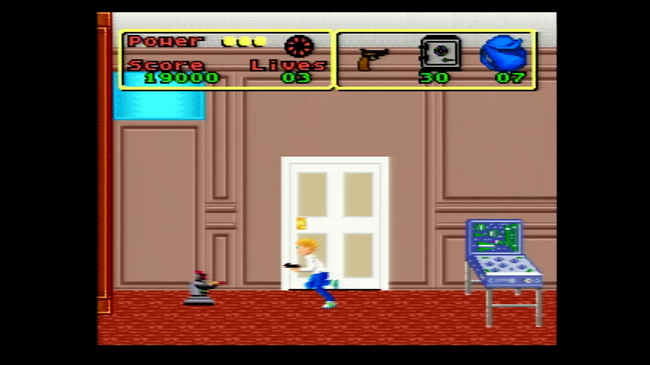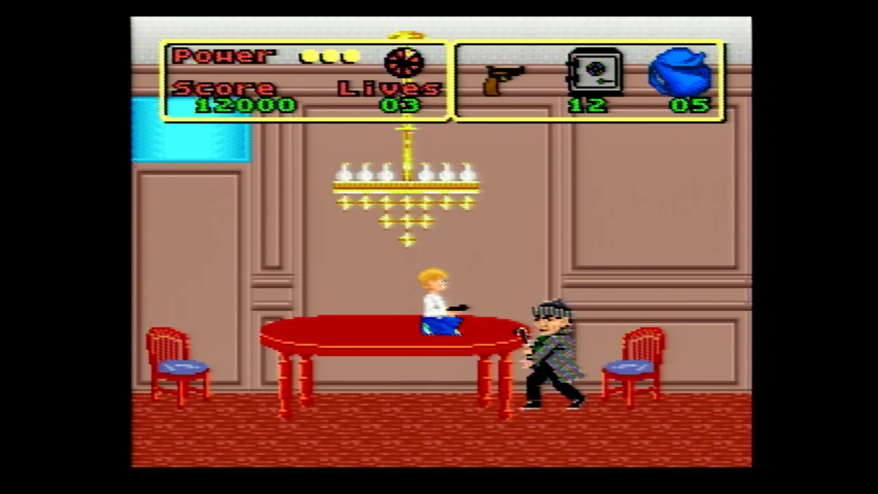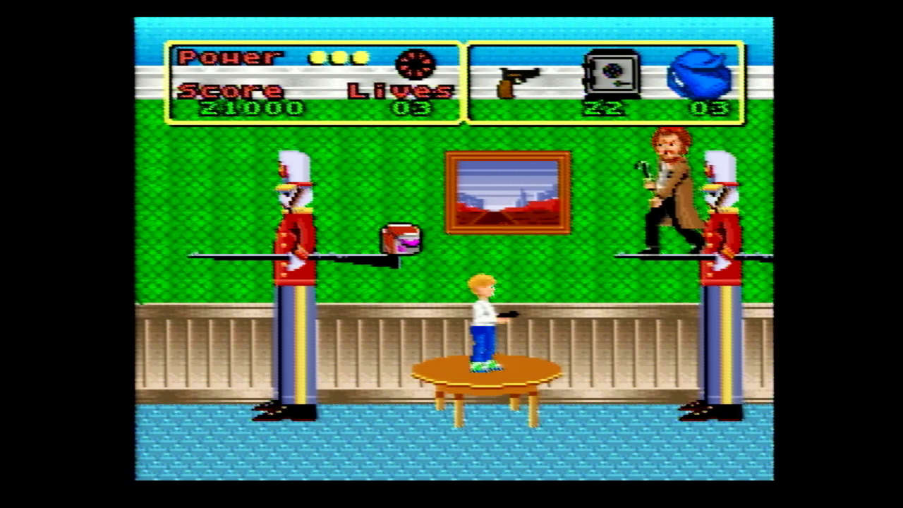 Anyway, the SNES version is…inoffensive. It’s four levels long and has you playing as Kevin and roaming around the house collecting valuables like emerald rings,