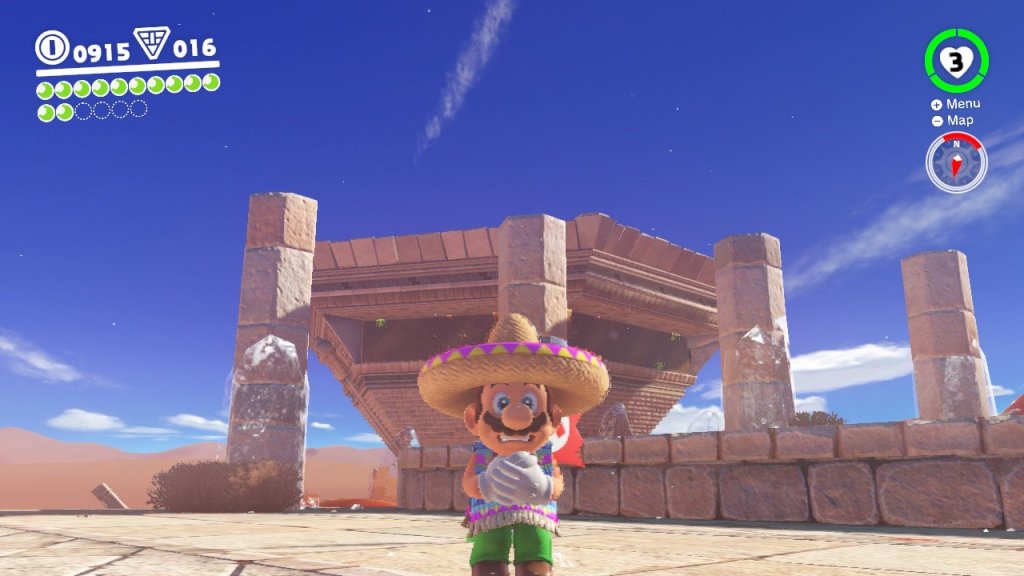Anyway, setting the power moon thing to the side for now, Odyssey’s a pretty solid game. Mario is now accompanied by a hat-shaped character (known as a Bonneter) by the name of Cappy, who can help Mario reach areas he might not otherwise be able to by acting as a platform for a short period of time, or allowing Mario to take control of a handful of denizens in each kingdom by capturing them, giving him access to areas he wouldn’t otherwise be able to reach, like diving down an incredibly deep well by capturing a Cheep Cheep. It’s a neat addition to the already fluid movement that we’ve come to know the Mario games for and adds another layer of depth to some puzzles.