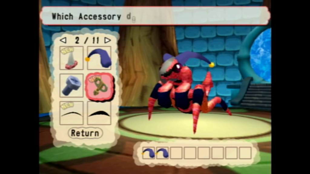 Monster creation is at the heart of Amazing Island’s gameplay. Monsters are required to play through the challenge courses of the island, and at the Hall of Life, you can create whatever comes to mind with the tools available. You first monster will be made for you with input from a series of five questions, but once it’s brought to life, you can customize it as you like, and you can even come back to redo the accessories, voice, eyes, and colors as you unlock more options. Each created monster will also net you a chance star, allowing you to retry a game on any of the courses up to a maximum of 99 times. Even if you don’t save your monster after making it, you can still keep the chance stars if you save your game. I made two that I didn’t save: Don Pinchion (pictured above in progress, I ran out of space to call him Don Pinchioni), and a monster with a dog frame that I simply called “Bubba”.