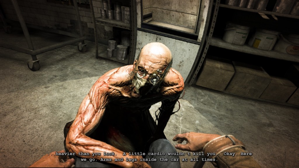 In truth, I’ve played Outlast before, back when it first came out approximately six years ago at time of writing. My first session was a grand total of eight minutes, just after the first scare and immediately after you see one of the primary antagonists. He walked by and closed a door while murmuring to himself about containment, and I was paralyzed. I was recording a playthrough at the time and announced that I would be right back. I closed the game, stopped the recording, and stopped playing for the day.