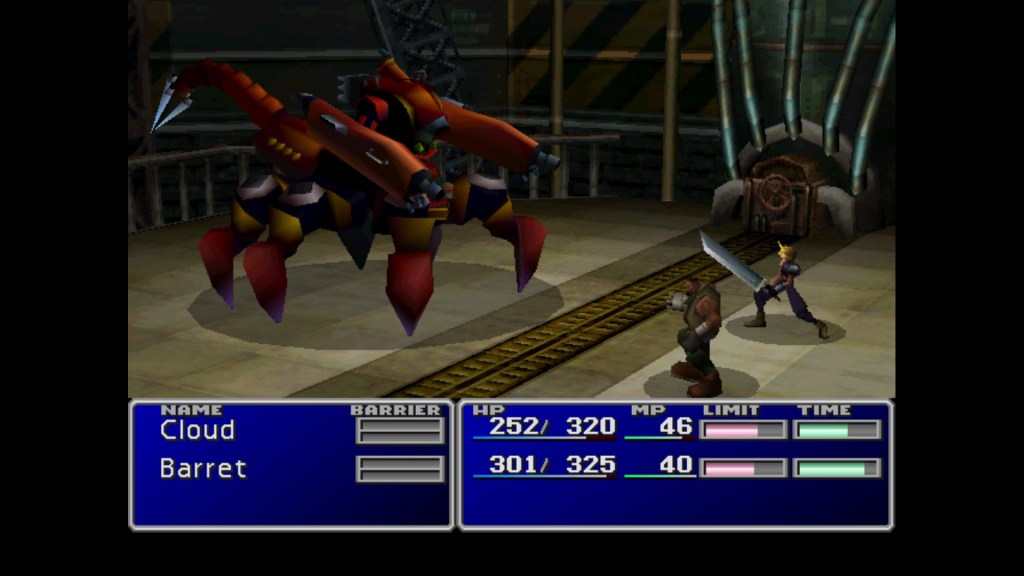 Midgar, a city that feeds on the planet’s lifeforce known in-universe as Mako energy. You and a ragtag band of eco-terrorists known as AVALANCHE board a train bound for the upper tiers of Midgar to bomb Mako Reactor #1. At the start, it’s just you in control of Cloud, a mercenary and ex-member of the Shinra Electric Power Company’s elite troops known as SOLDIER, as you fight your way through the security between you and your target. Before long, you’re joined by Barret, a bear of a man with a gun grafted to his right arm in place of where his hand should be. Together, you and the rest of AVALANCHE make your way inside the #1 reactor and ultimately destroy it, but not without being accosted by security mechs.
