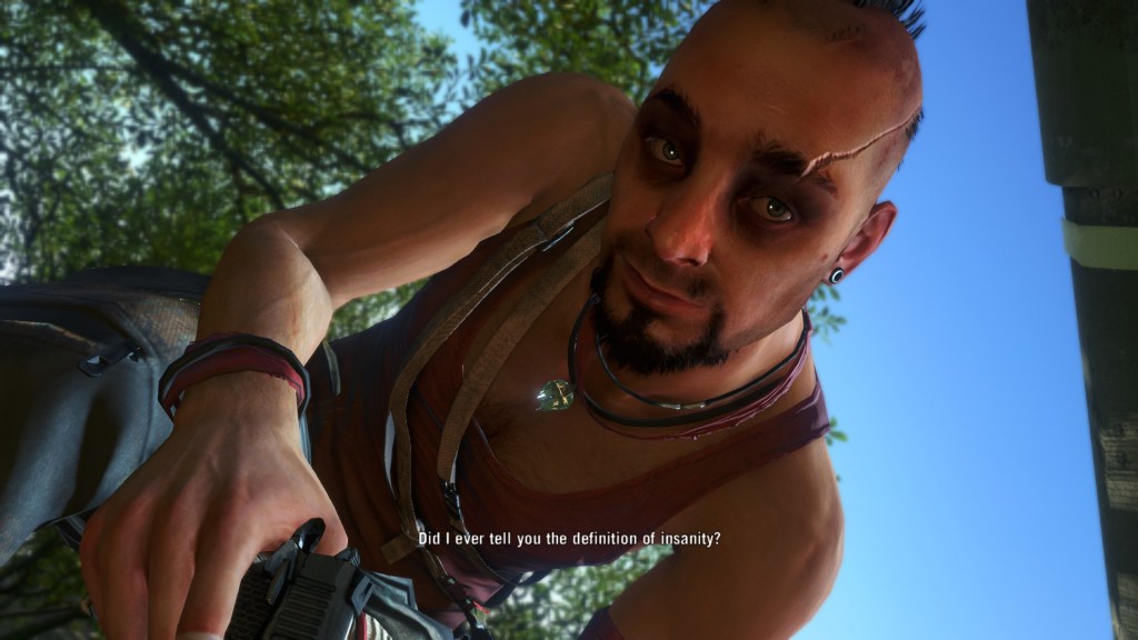Anyway, Far Cry 3 has…aged. Not particularly well, either. Vaas is still an excellent antagonist, but that and the gunplay are about all it has going for it anymore, and even the latter is questionable. The writing’s not great, the faces are kind of uncanny (see above and below), and the map is too large and littered with collectibles that don’t really do much after a point.
