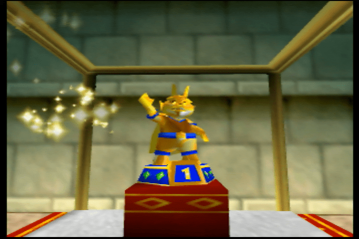 This is another interesting deviation from other racing games at the time: Each of the four worlds had a key hidden in one of the stages. Generally off to the side (except for Dino Domain and Dragon Forest) and might take a bit of hunting to find, but if you can grab it you’ve automatically unlocked that world’s minigame. You don’t even have to finish the race or come in first. As soon as you go back to the lobby, a small cutscene plays and you’ve unlocked the game. It’s neat, but again will take a bit of legwork and you’ll almost always have to forfeit your position in the race to get it.