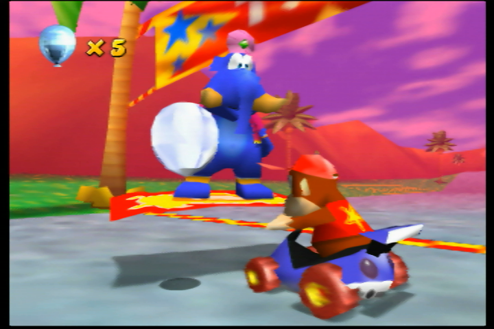 See, each of the first four worlds of Diddy Kong Racing has something of a re-fight mechanic like you would see in Mega Man. Except in this case instead of one huge boss rush at the end, the worlds are split into two halves, marked by a race against that world’s boss. Winning each race will net you a balloon to unlock other tracks, and the second run with the silver coin challenge will net you another one.