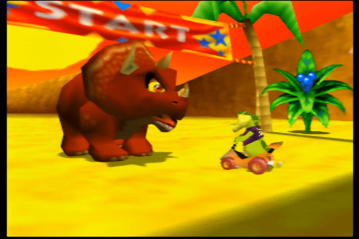 Anyway, Krunch made his way through each of the tracks, doing pretty well in Hot Top Volcano (which, by the way, has amazing music) and finally making his way to the boss: Tricky the Triceratops.