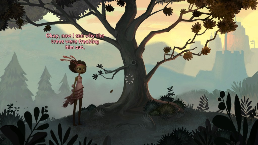 Like I said, this part of the game is loaded with so much personality. It made me smile so much that I drew a feather in my notes and labeled it “a single F’ther” after a character of the same name. I just couldn’t help but smile so much! And the puzzles didn’t require an excessive amount of back and forth. At least at first. There were a few that I found myself stuck on that resulted in my wandering aimlessly, but after a little while I realized that there were places that I hadn’t explored fully and before long I found what I was looking for. It didn’t take all that long, so I didn’t mind.
