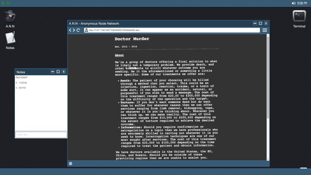 If you choose to go through the tutorial (which I recommend for first-time players for obvious reasons), your friend Adam warns you that as you dive further and further into the deep web, you risk attracting the attention of kidnappers who track your location (referred to by one of the confessions on the above site as “Dark Russian Santa”) in an attempt to do what kidnappers do and abduct you. It’s supposedly just an urban legend, but this was what first set off my anxiety so badly that when I went to bed that night I put my phone on silent, turned on airplane mode, and laid it face-down on my nightstand in case there was a kidnapper right outside of my home. There aren’t a lot of games that send my lizard brain into that kind of lingering panic even among horror games. The only other game that I can think of that managed anything remotely similar was SCP: Containment Breach. For days after I played that one, I slept with a light on and was afraid to open doors. Even the slight motion of a piece of paper taped to my door as my ceiling fan worked through a hot summer night would cause my heart to stop and leave me wide awake. I knew it wasn’t real, but my brain would constantly respond “But what if it is?”
