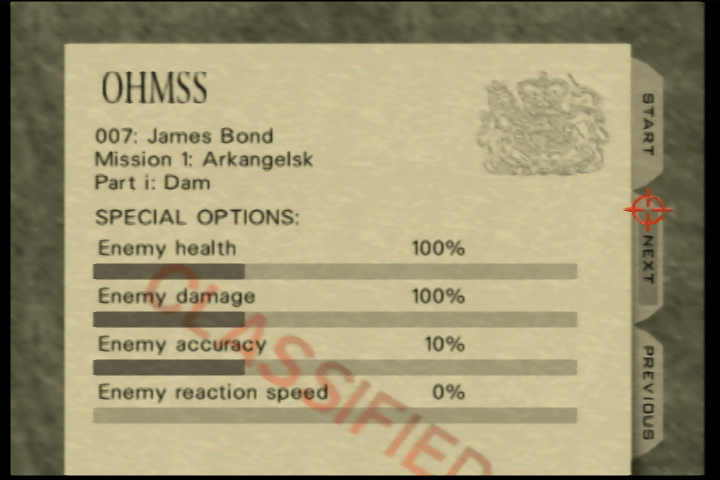 I don’t hate Egyptian, but I find the difficulty unfair compared to the other stages. It felt weaker than everything else. I’m not sure if it’s just that Golden Gun puzzle souring my experience or the fact that I didn’t struggle with this stage on 00 Agent nearly as much as I did pretty much every other stage, but Baron Samedi’s presence saves it for me. And even better, clearing this last stage on 00 Agent nets you the best reward of all: 007 Mode. Here, you get to customize enemy health, damage, accuracy, and reaction speed. I hear there’s more you can do with it, but I’ve never played with it all that much before.
